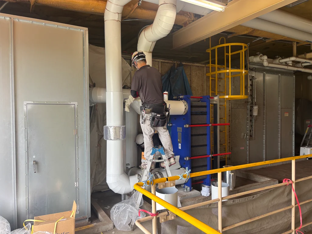 Works 施工事例 作業内容 水冷チラー更新工事 コメント 既設チラー設備の更新に伴い、配管系統・ポンプ設備を含めた冷水システムの改修を実施しました。 現場状況に応じた機器配置と配管施工により、安定運転と長期的な信頼性 […]
